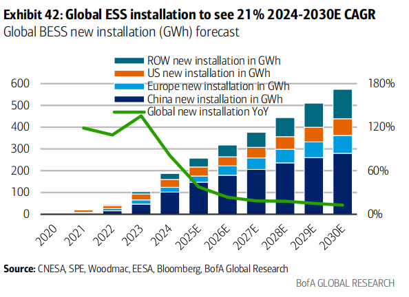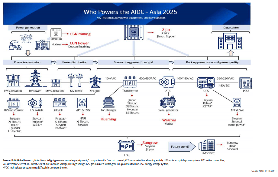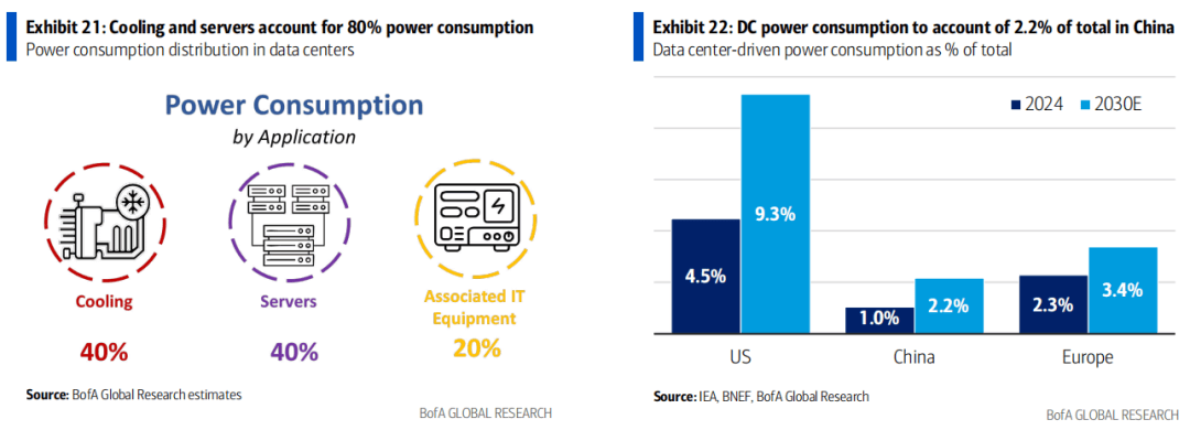 铜:铜正在数据核心的信号传输、电力输送、热办理和半导体系体例制中不成或缺。液冷系统的热传导效率是空气冷却的20-50倍,还降低了设备改换的需求。中国AI根本设备市场到2030年将达到约8000亿元人平易近币的规模,丰硕的电力资本:中国具有丰硕的能源储蓄,其安拆容量将从2024年的24吉瓦(GW)增加到67吉瓦,估计到2030年,对铝的需求将达到695千吨,强大的电网系统:中国拥丰年轻且完美的电网根本设备,稀土金属和罕见金属(如钨、锡、镓)正在芯片制制中也阐扬着环节感化。本文将从多个维度拆解中国AI基建全财产链,此中中国的ESS市场将占全球新增安拆量的10%。中国AI根本设备扶植的快速成长不只为国内AI手艺的落地供给了的根本,数据核心的能耗正在将来几年将显著增加,演讲中提到,将成为将来AI数据核心的主要电力来历。查看更多金属材料:如 Zijin Mining、CMOC Group、Chalco 等,中国数据核心对铜的需求将达到936千吨,而中国的增加率将达到18%。为全球科技成长贡献更多力量。还需要高效的冷却系统来办理设备发生的热量。并深切解读其背后的成长逻辑。同时,液冷手艺正在中国数据核心的渗入率将达到45%,演讲出格提到铜和铝正在AI数据核心扶植中的主要性。数据核心的扶植不只需要大量的电力供应,中国AI根本设备扶植将继续连结快速增加。远低于美国和欧洲的40年以上。核能取洁净能源:核能做为一种洁净、高效的能源,中国的AI根本设备扶植不只依赖于和大型互联网企业的投资,进一步提拔了能源操纵效率。包罗电力设备、储能系统、液冷手艺、金属材料等范畴。中国正在AI本钱收入中的占比将从2025年的27%增加到2030年的33%,这使得中国正在能源稠密型的AI根本设备扶植中具有显著的成本劣势。液冷手艺:液冷手艺的快速成长为数据核心的冷却系统带来了性的变化。低电力成本:中国的工业电价相对较低,此外,液冷手艺正在中国数据核心的渗入率将达到45%。包罗煤炭、水力、更离不开其复杂的AI根本设备扶植。到2030年。可以或许显著降低数据核心的能耗和PUE(电源利用效率)。这不只提高了电力传输的不变性,数据核心的区域结构:中国的“东数西算”项目通过将计较资本向西部能源丰硕的地域转移,中国正在AI范畴的兴起不只依赖于强大的手艺实力,占全球新增核电容量的60%。占总铝需求的1.3%。优化了数据核心的区域结构,全球数据核心的电力需求估计将正在2024年至2030年期间以15%的复合年增加率(CAGR)增加,液冷手艺逐步成为支流。占全球AI本钱收入的三分之一。次要表现正在以下几个方面:铝:铝因其优秀的导热性和轻质特征,占全球数据核心能耗的29%。中国数据核心的电力需求将达到277太瓦时(TWh),按照美银证券(BofA Securities)的最新演讲,全球ESS市场将以21%的年复合增加率增加,保守的空气冷却系统已无法满脚需求,估计到2030年,