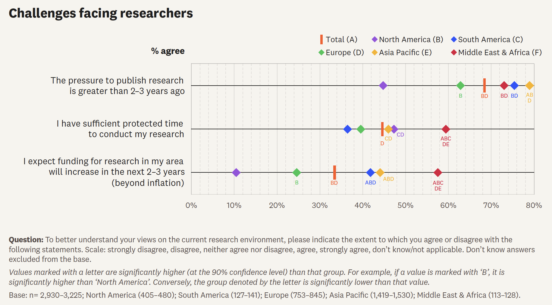 68%暗示跨学科合做较着添加,53%暗示跨国合做愈加活跃。调研发觉,此外,此中亚太地域受访人感触感染最为积极(68%),只要45%的科研人员认为本人具有脚够的时间用于科研,